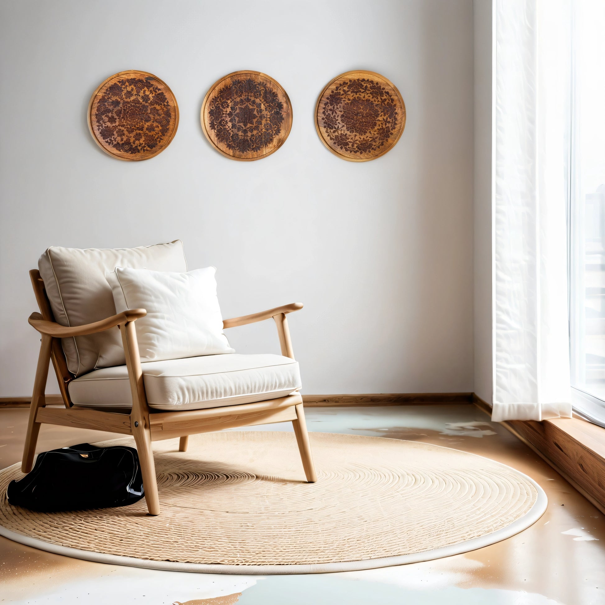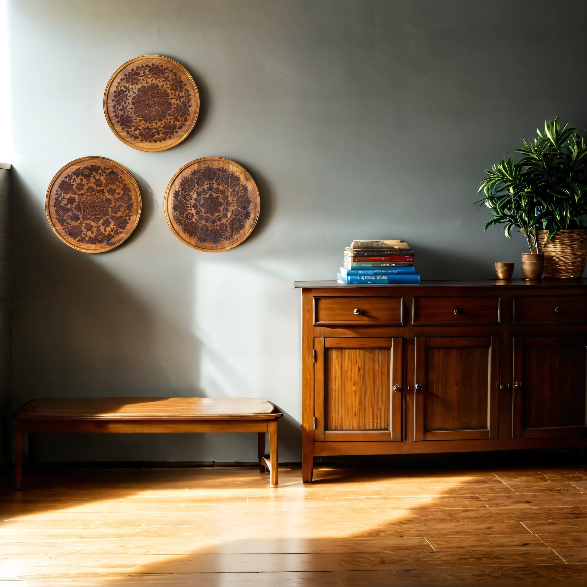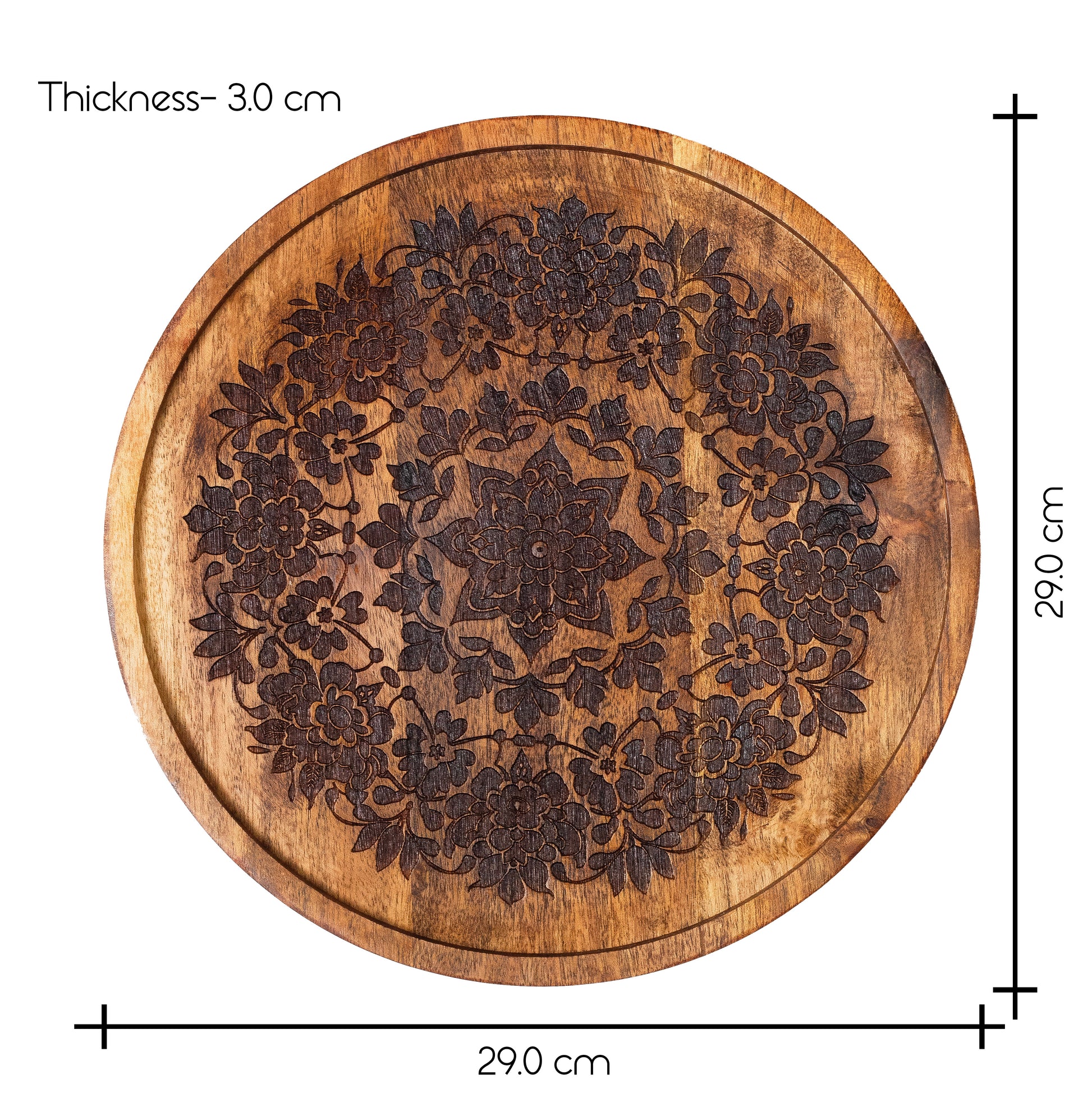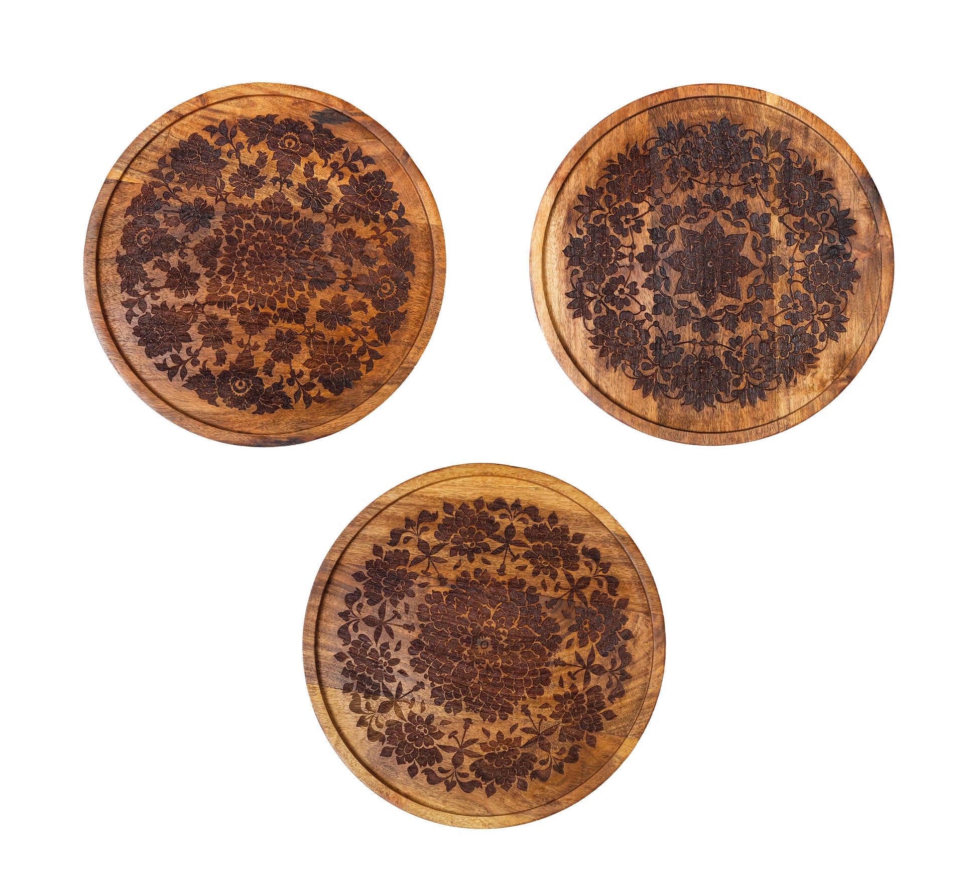 Intricately Carved Floral Patterns | Handcrafted Acacia Wood Wall Plate | Set of 3