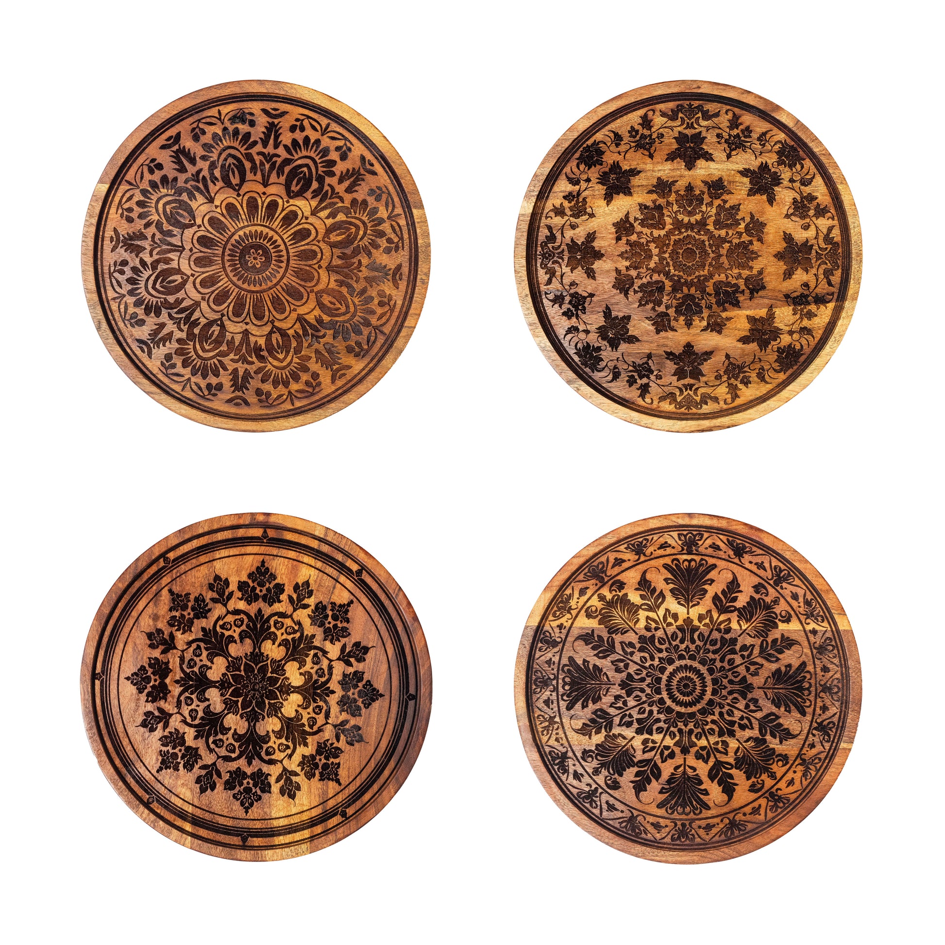 Handcrafted Acacia Wooden Wall Art Plate | Set of 4