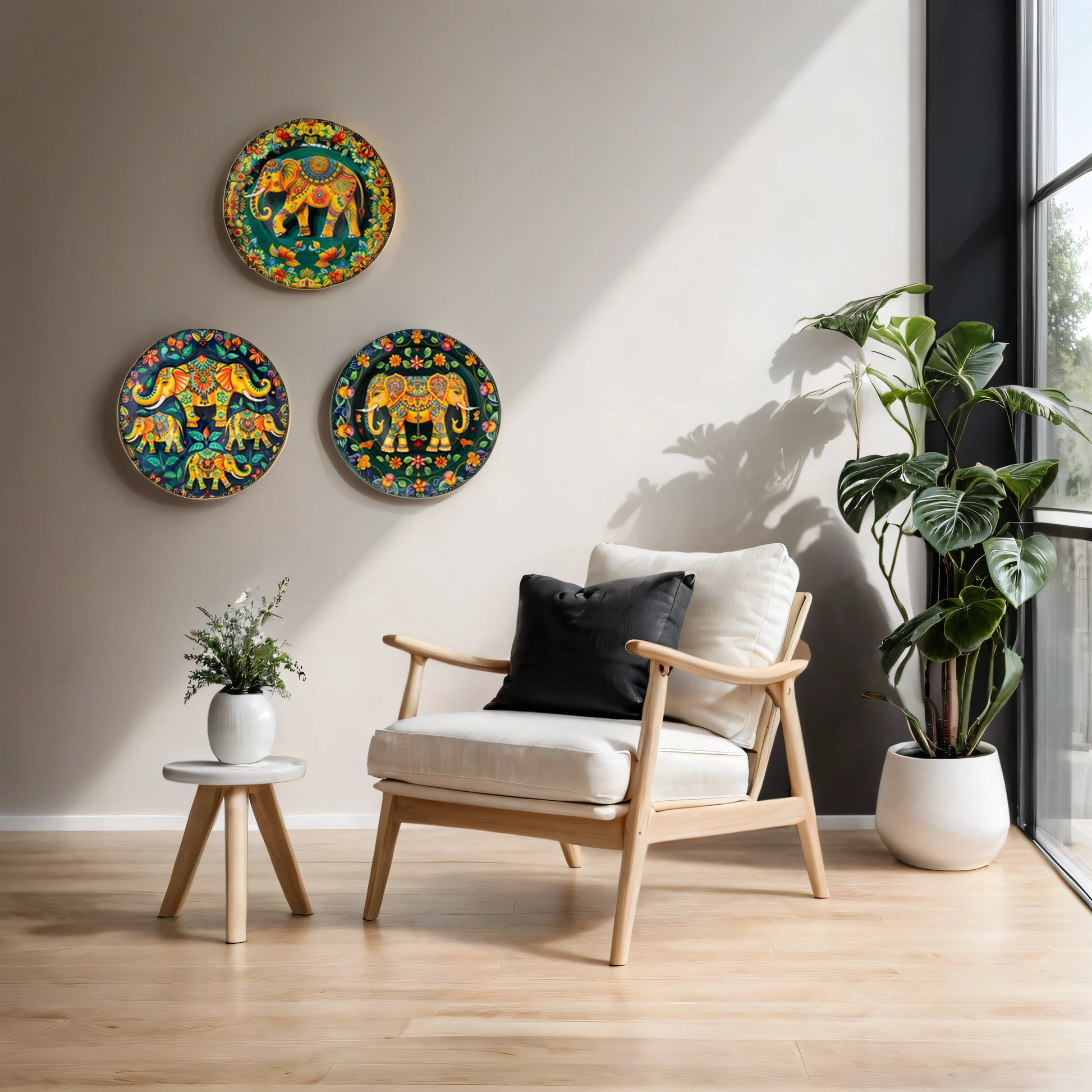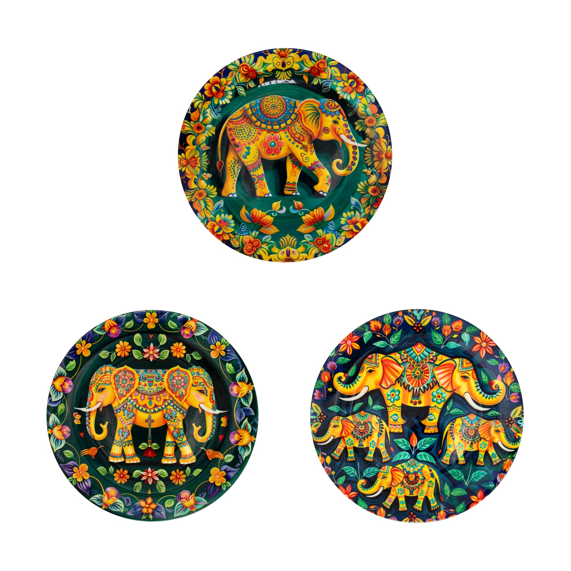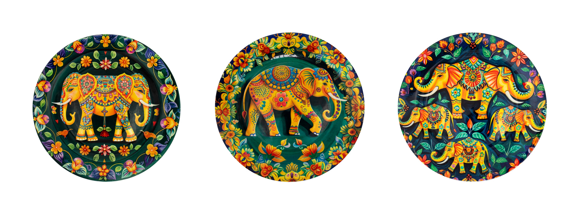 Rajasthani Elephant Ceramic Wall Plate Set | Set of 3