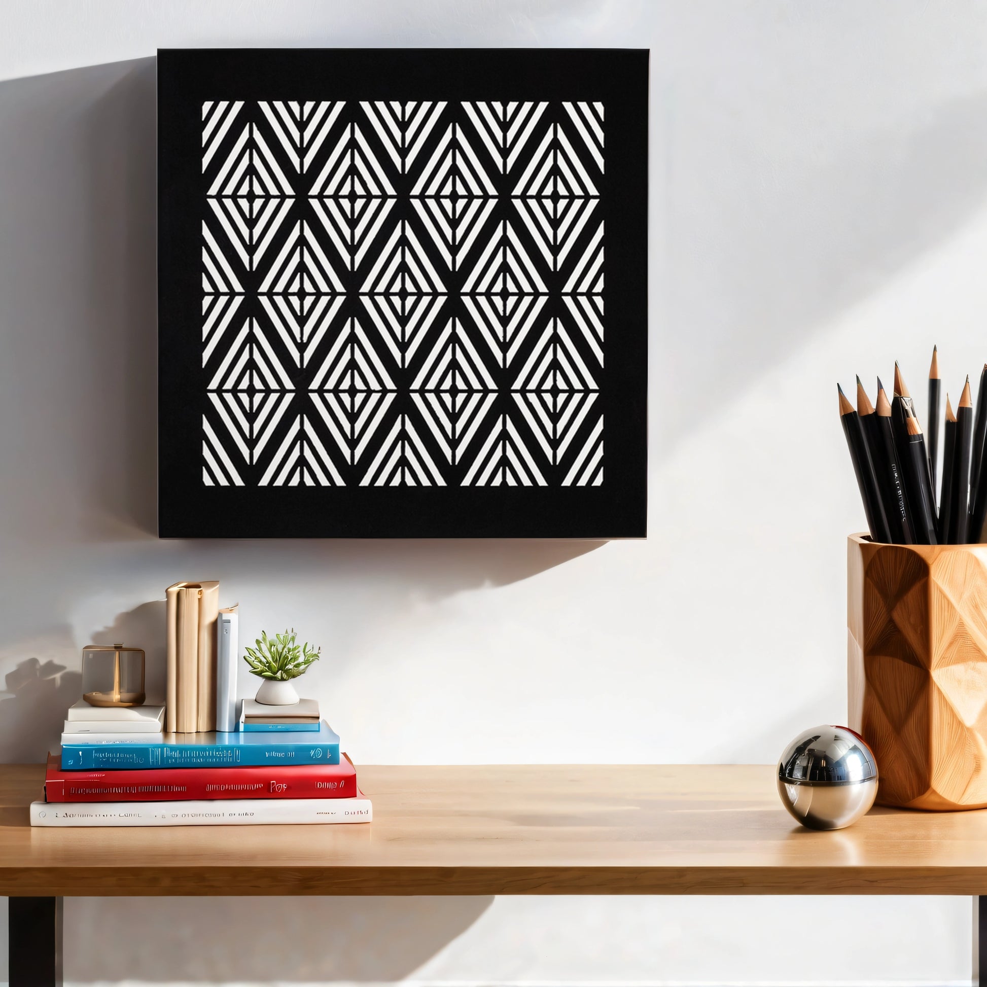 Geometric symmetrical Black and White Wall Art (11 Inches)