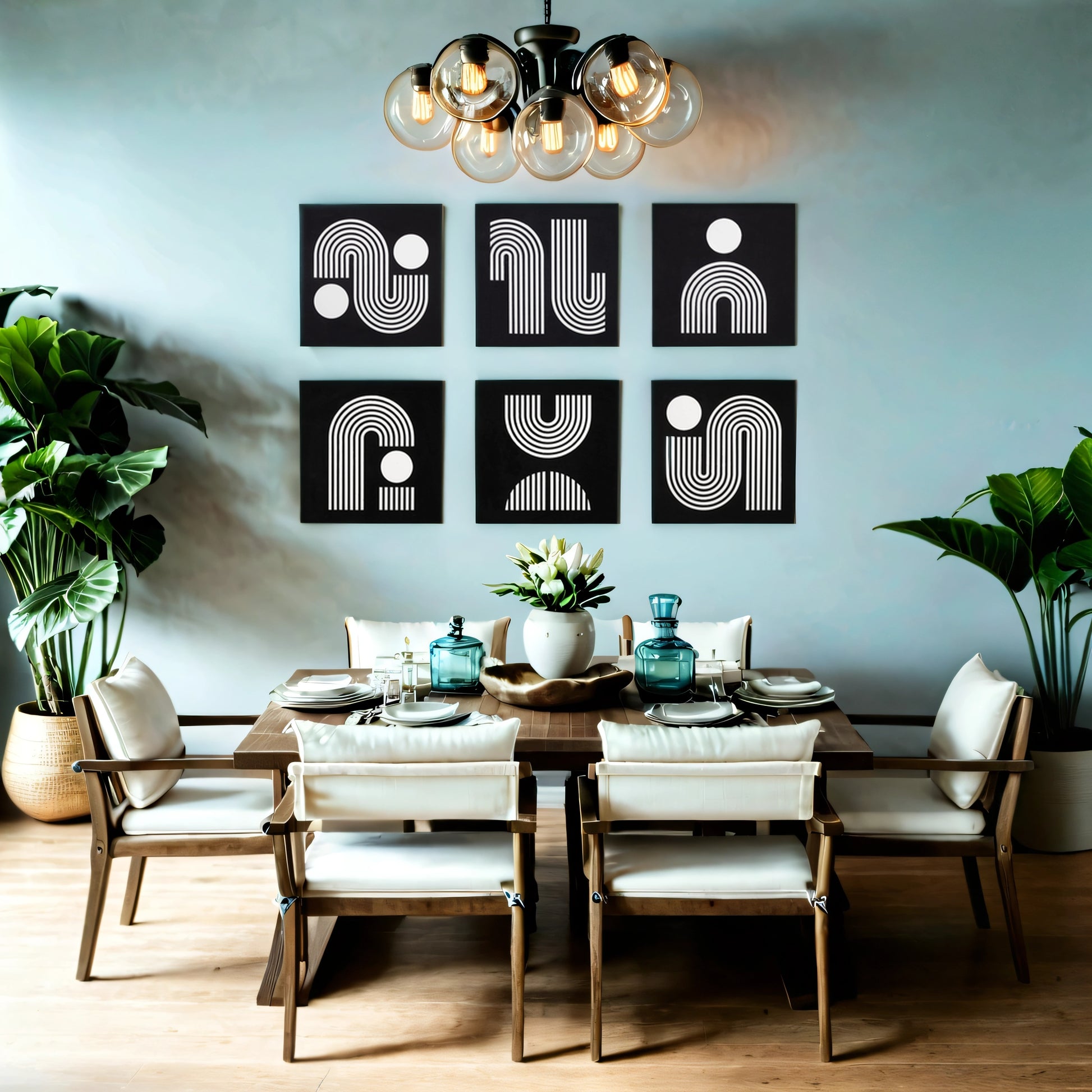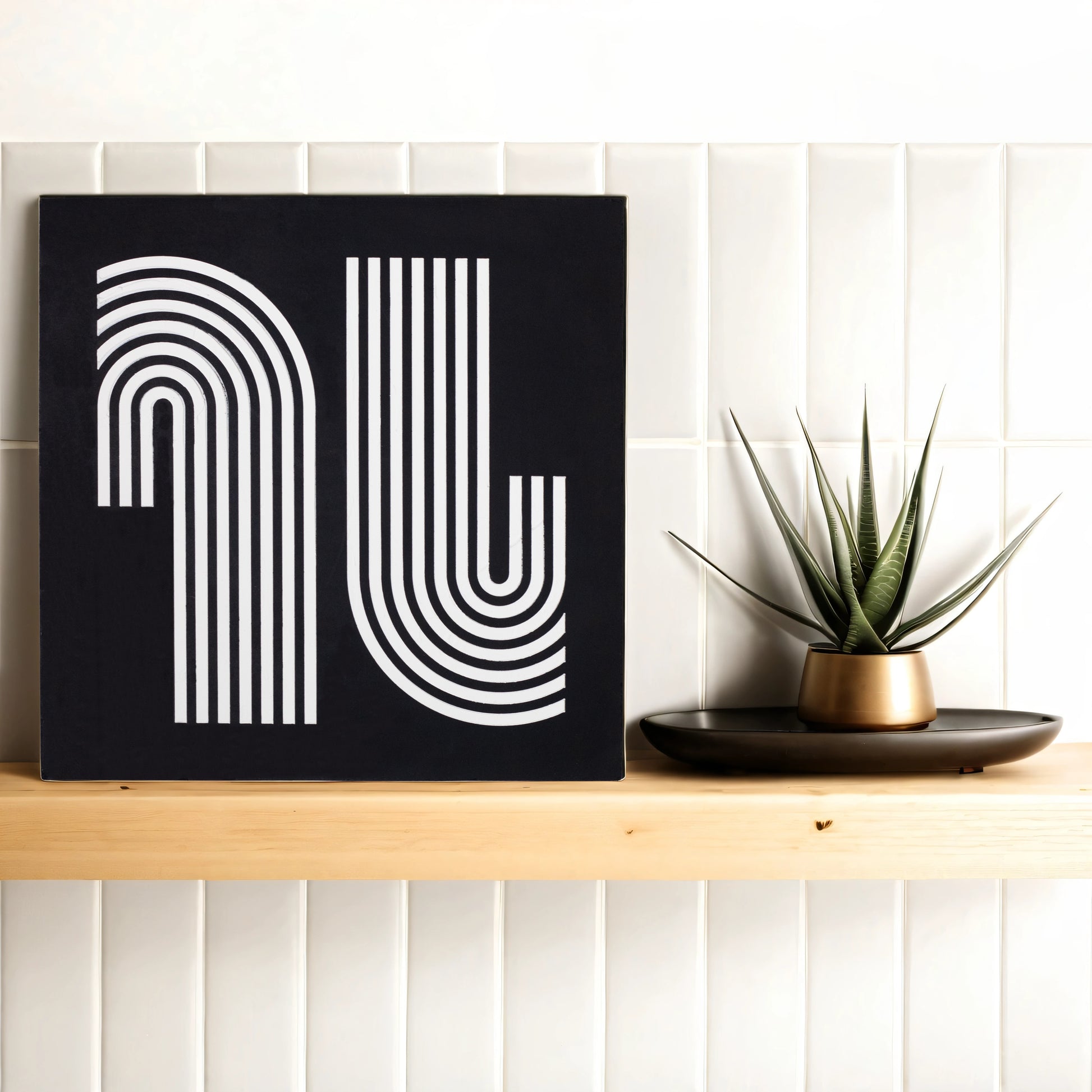 Symmetric Minimal Black & White Geometric Wall Panel (11 Inches)