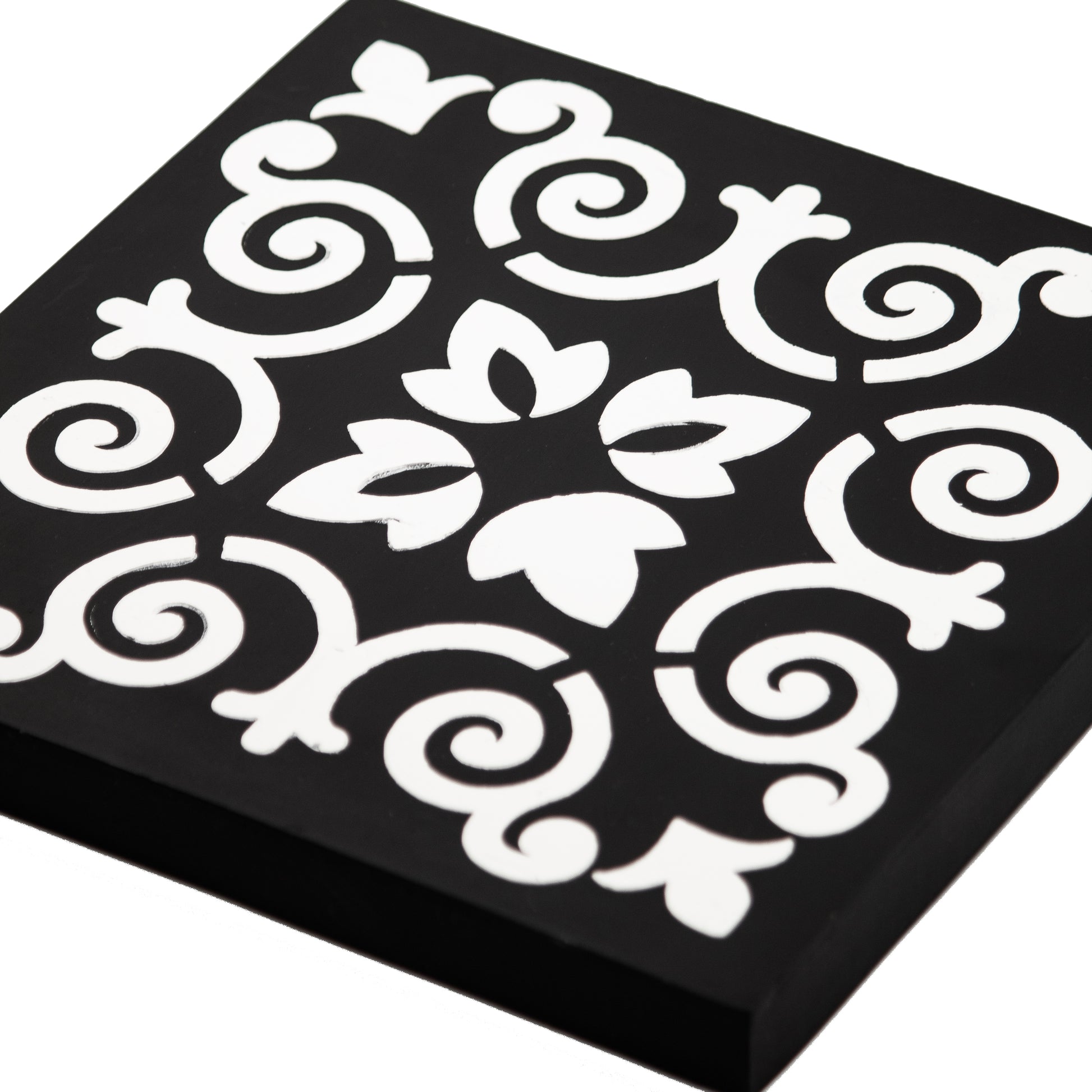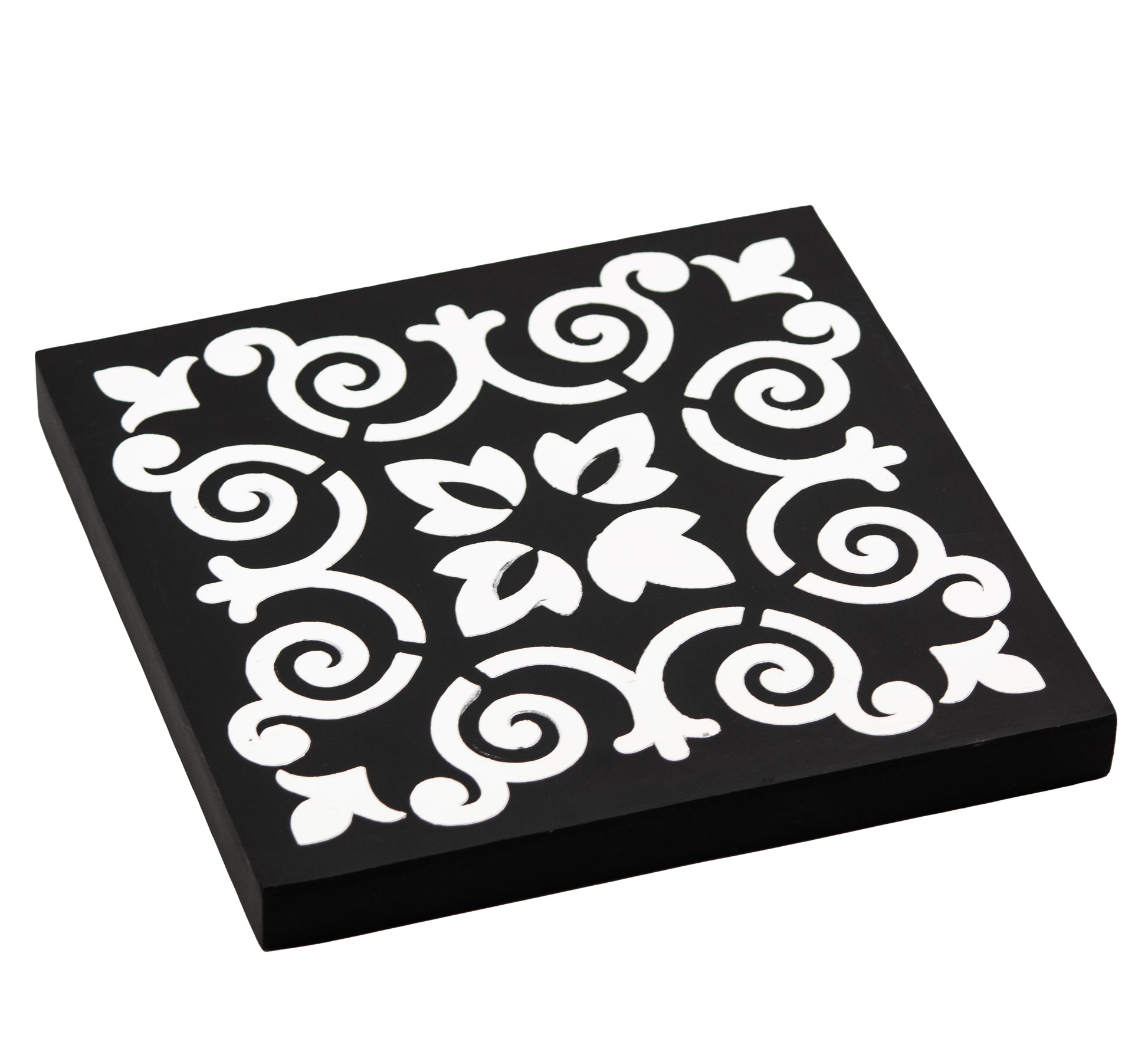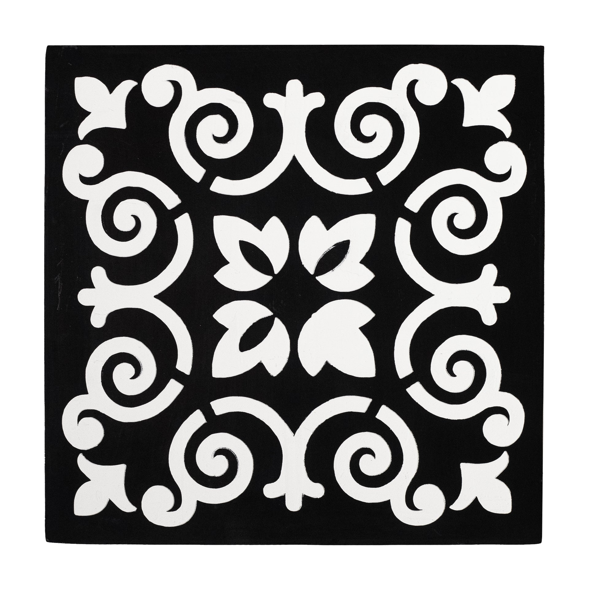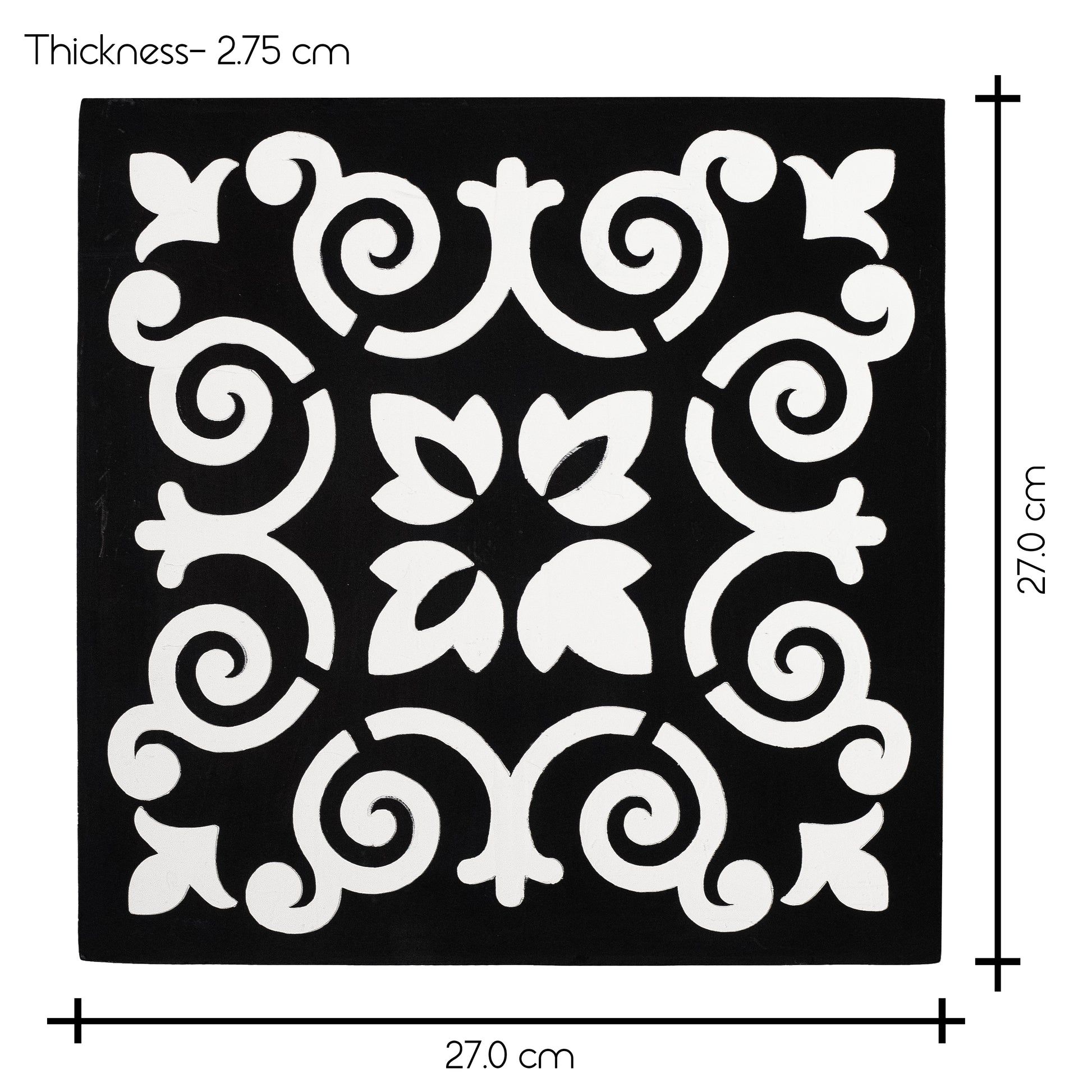 Floral Art Deco Black & White Wooden Wall Art Panel (11 Inches)