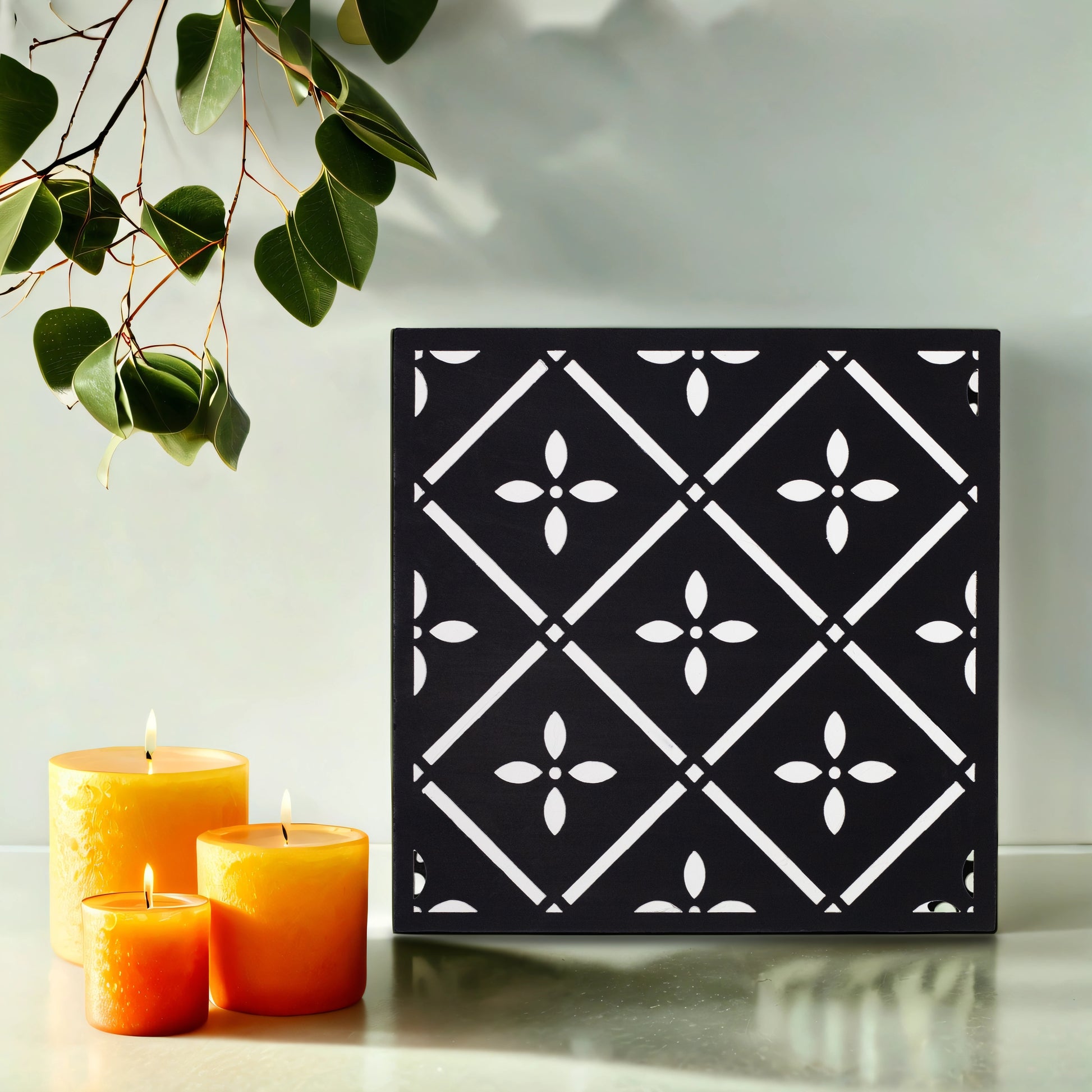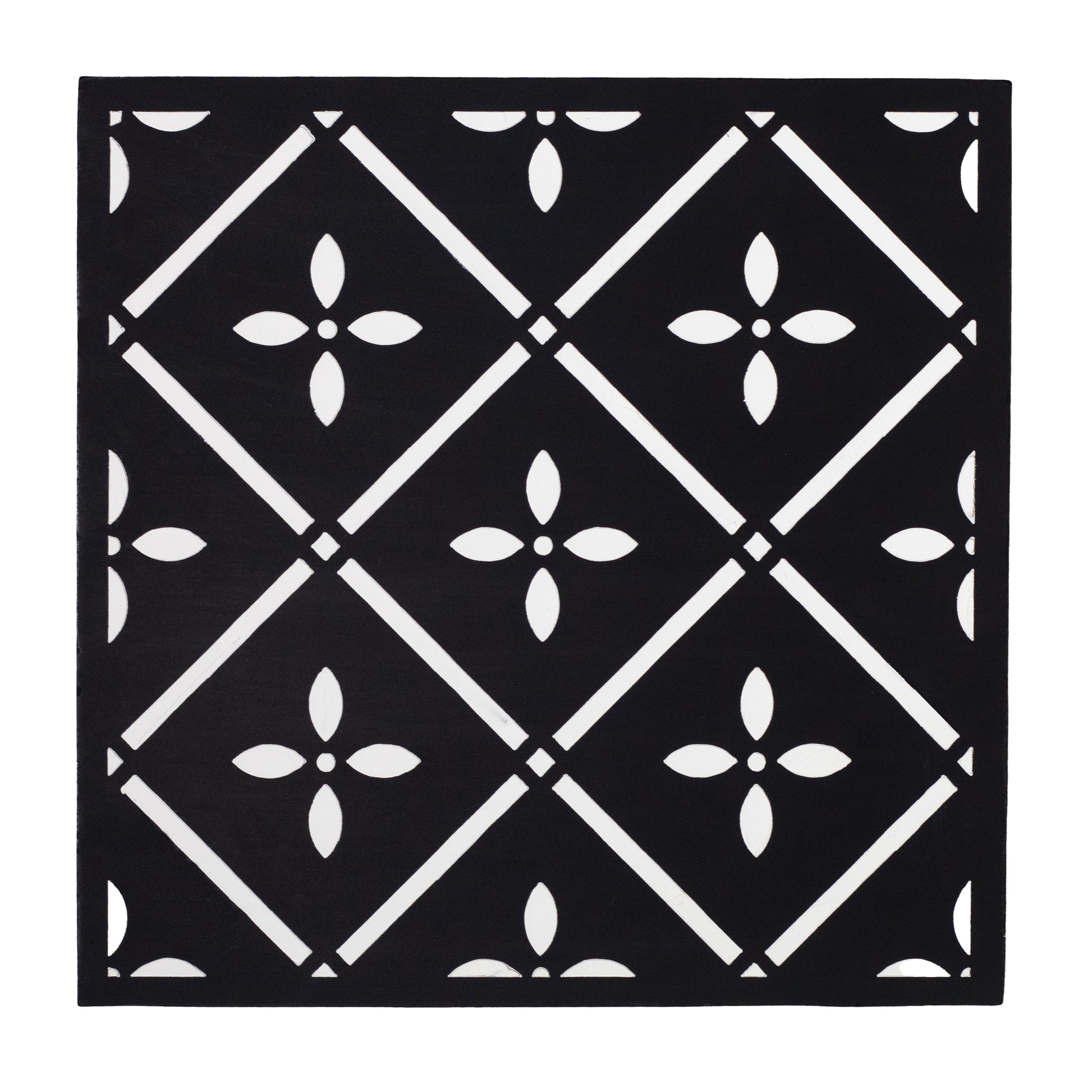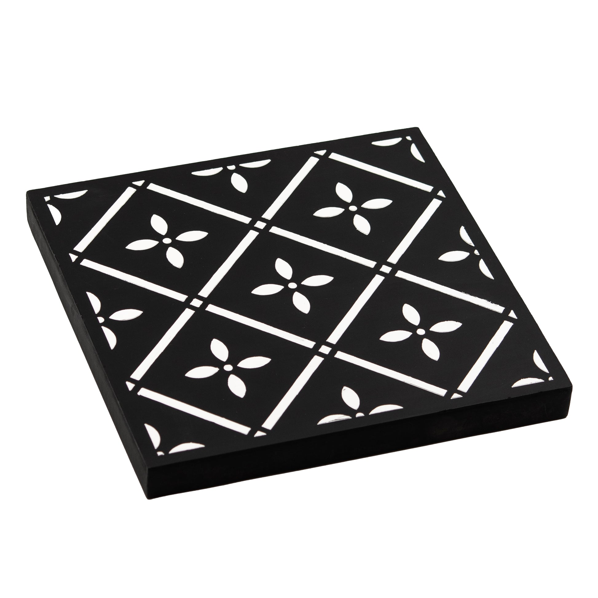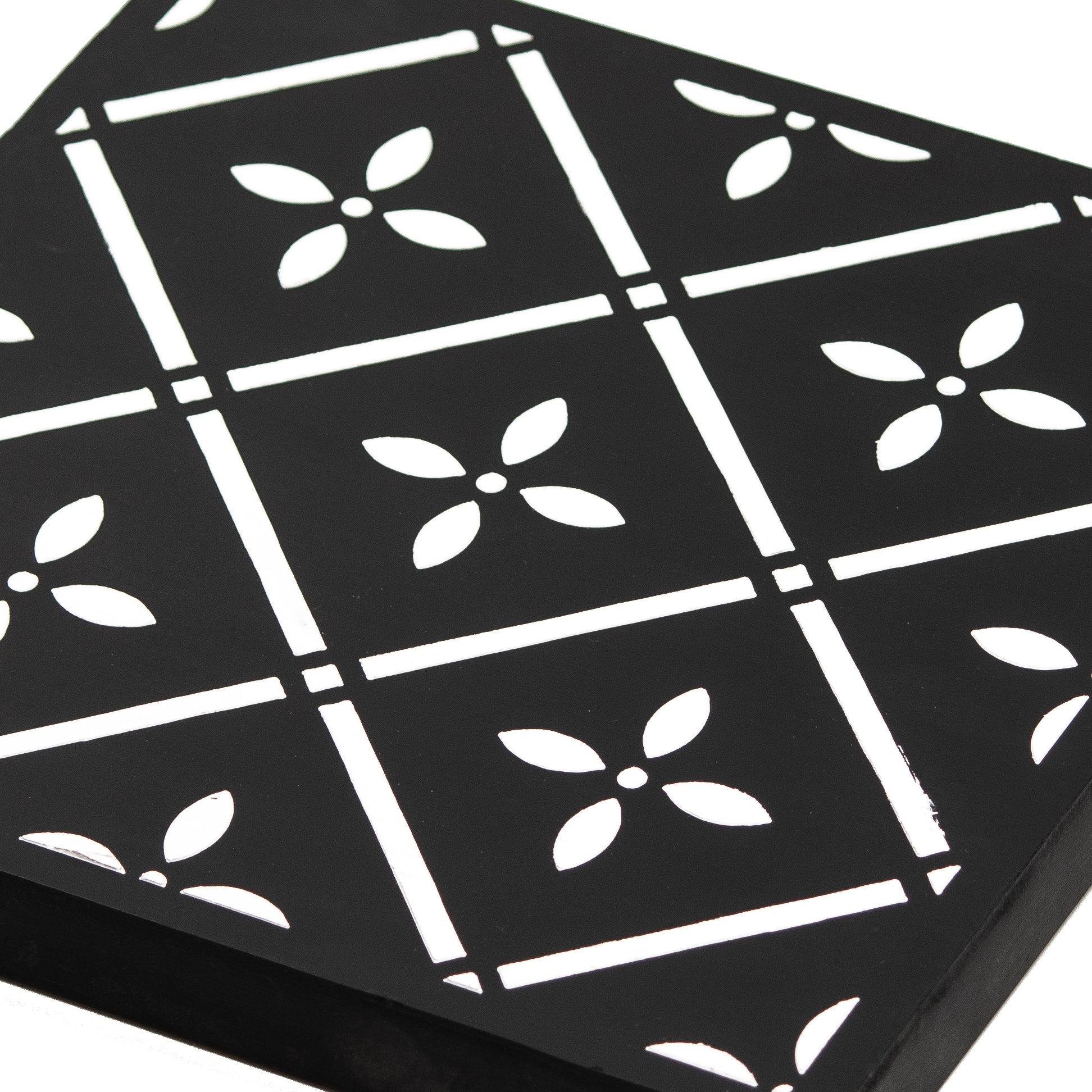 Floral Art Deco Black & White Wall Art Panel (11 Inches)