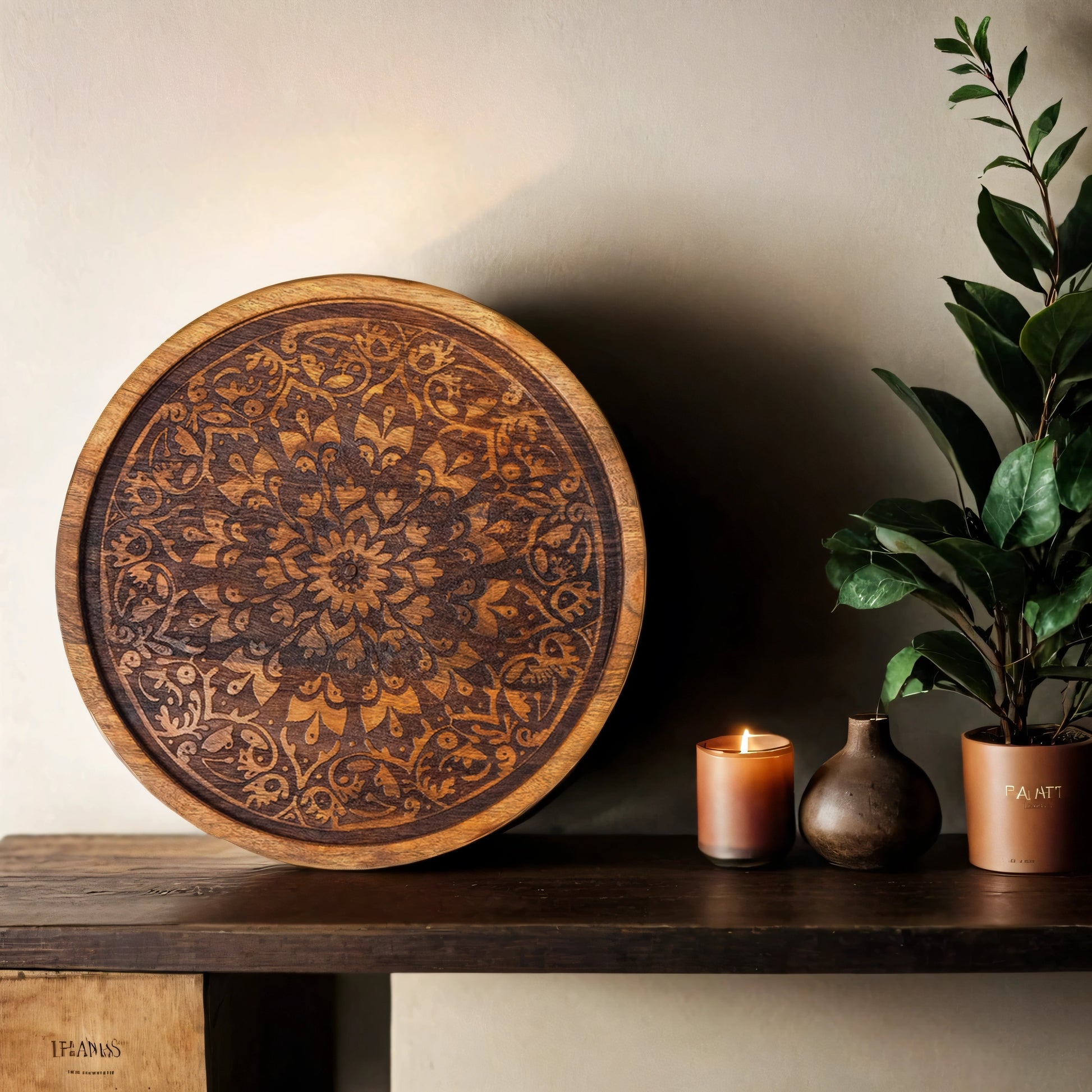 These handcrafted wooden carved plates combine timeless beauty with sustainable craftsmanship. Designed with intricate patterns and a natural wood finish, they are perfect for wall decor or as elegant tabletop accents. Each plate reflects a blend of artistry, tradition, and responsibility.