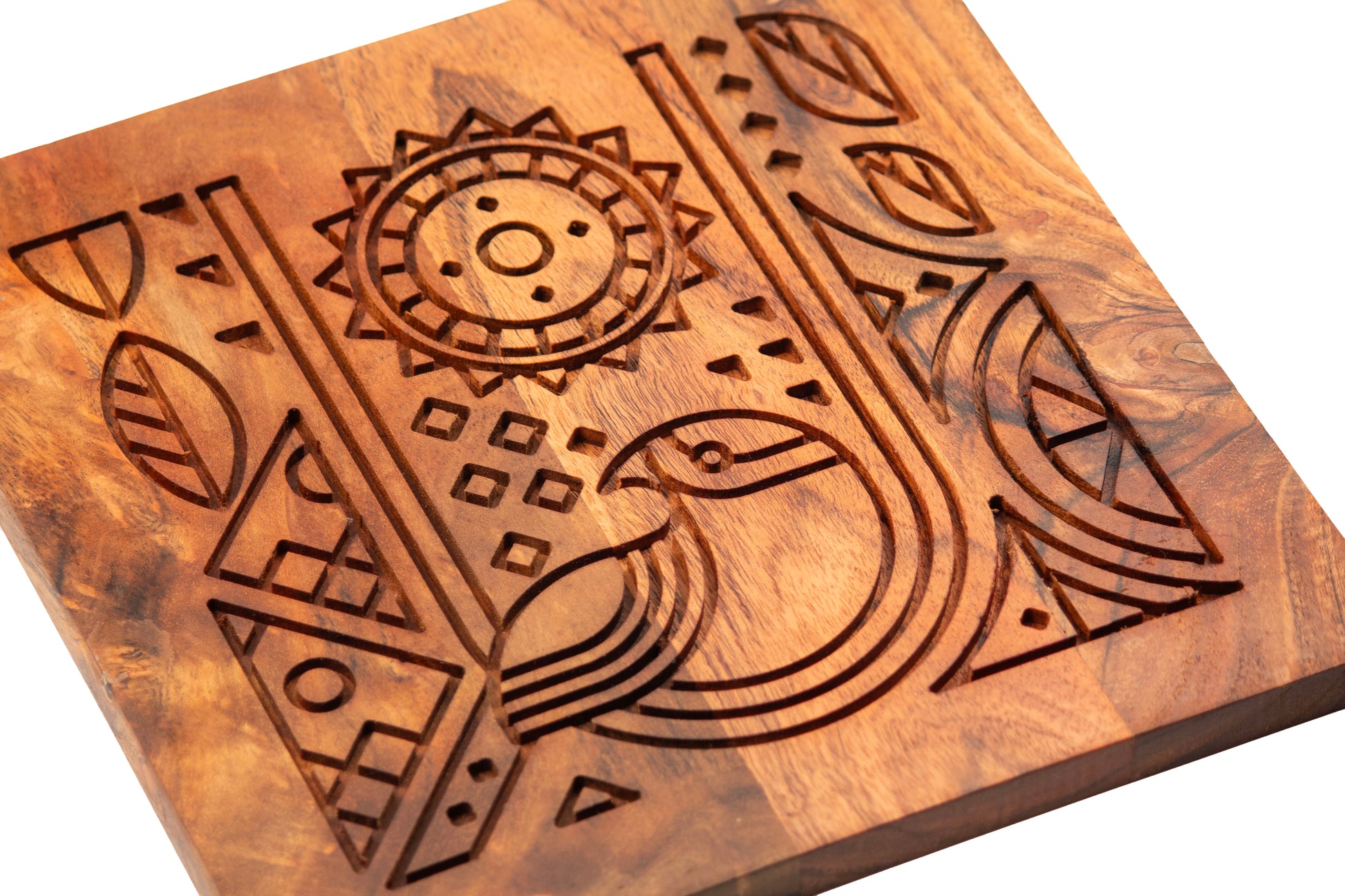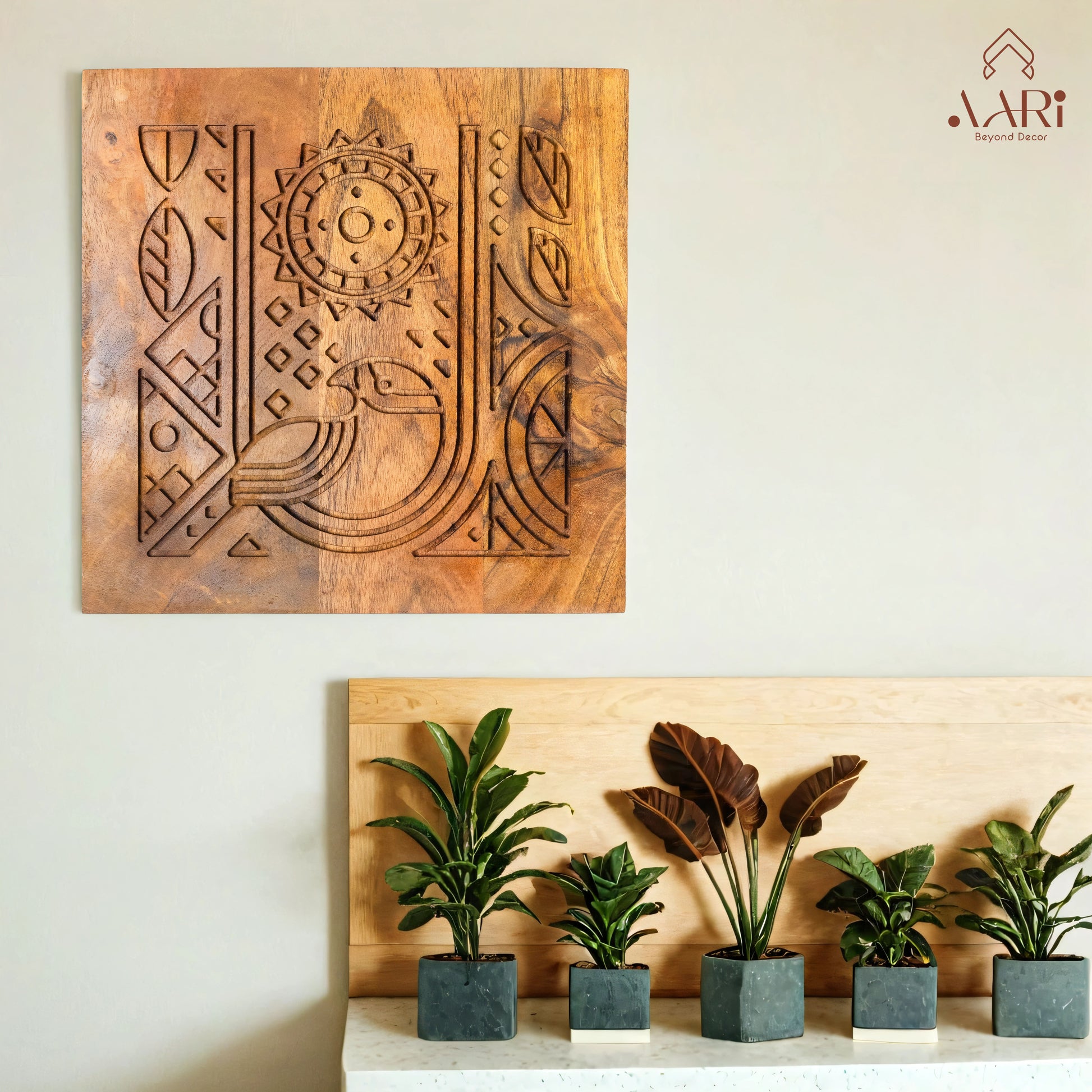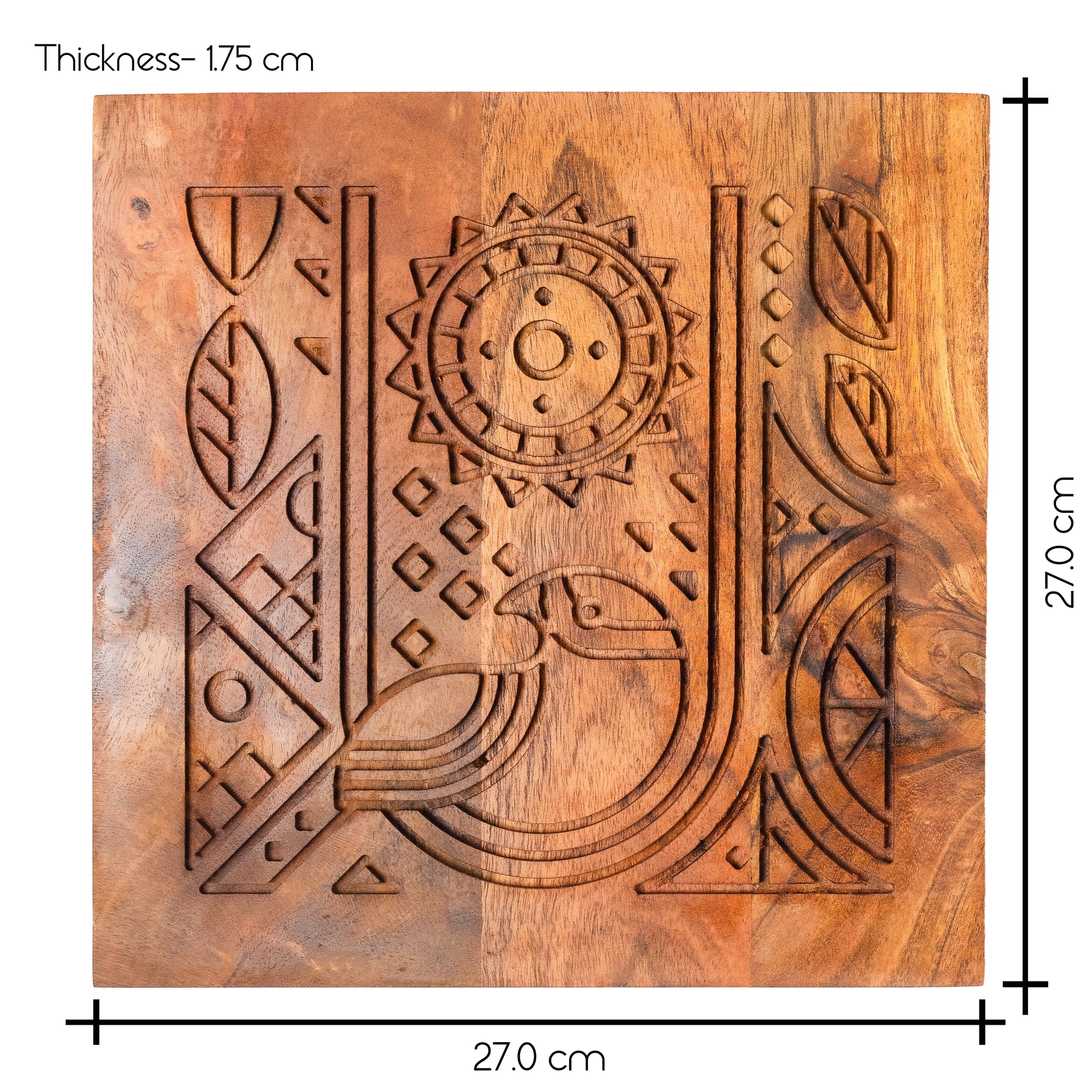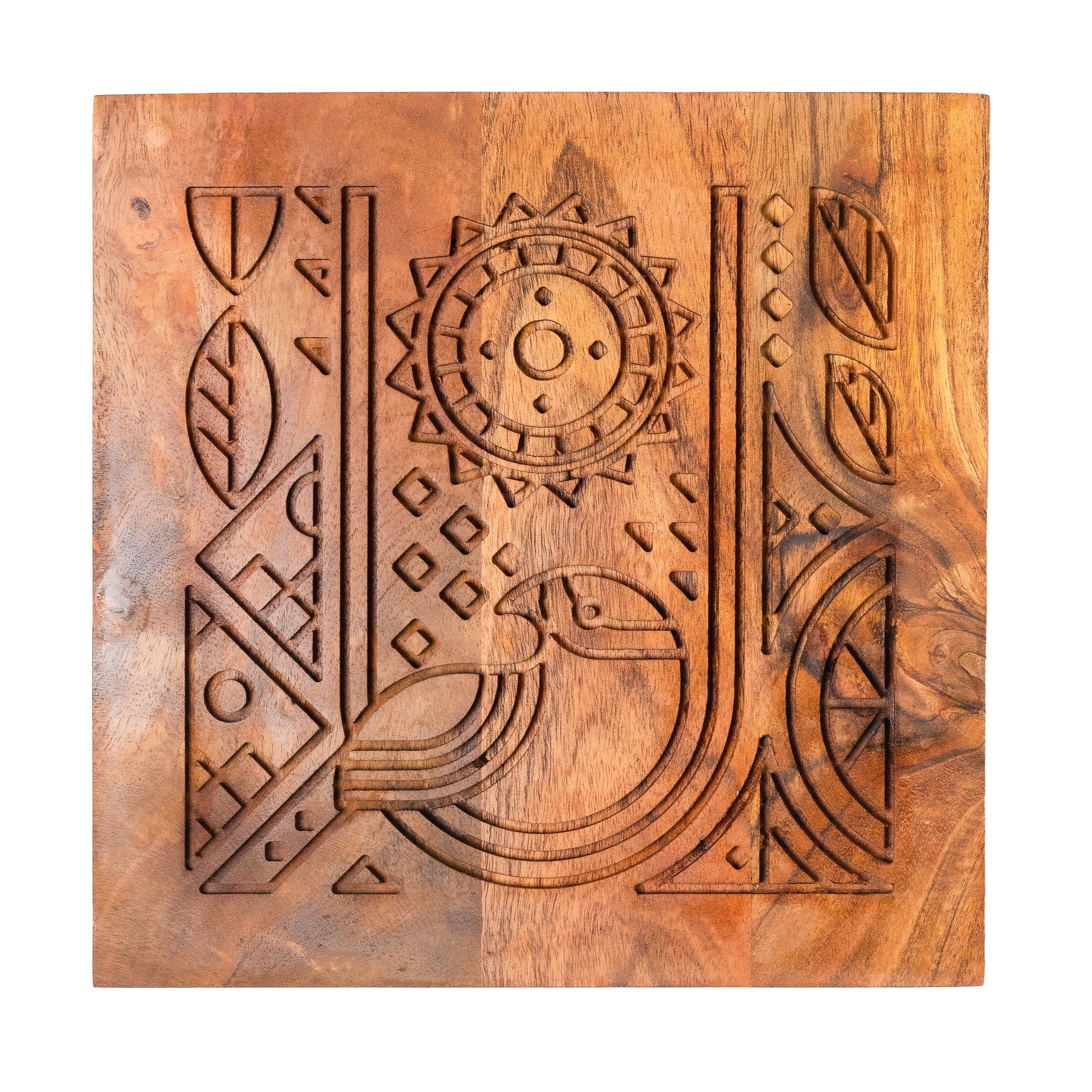 Bird and Sun Geometric Design Carved Panel (11 Inches)