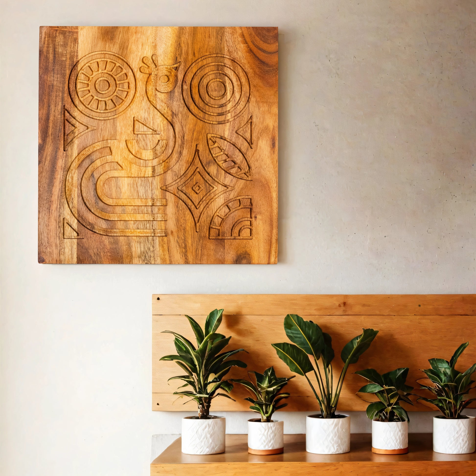 Enhance your interiors with these handcrafted wooden engraved panels. Featuring intricate designs and a natural finish, these panels are perfect for adding warmth, elegance, and a touch of artisanal craftsmanship to your space. Sustainably crafted to blend beauty and responsibility seamlessly.