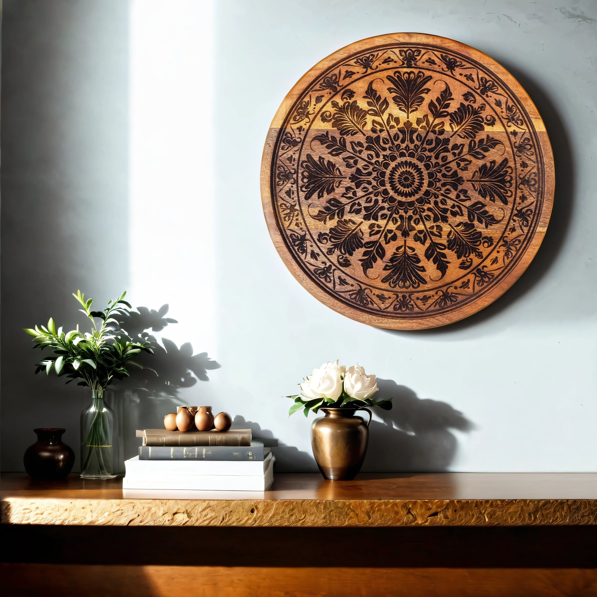 These handcrafted wooden carved plates combine timeless beauty with sustainable craftsmanship. Designed with intricate patterns and a natural wood finish, they are perfect for wall decor or as elegant tabletop accents. Each plate reflects a blend of artistry, tradition, and responsibility.