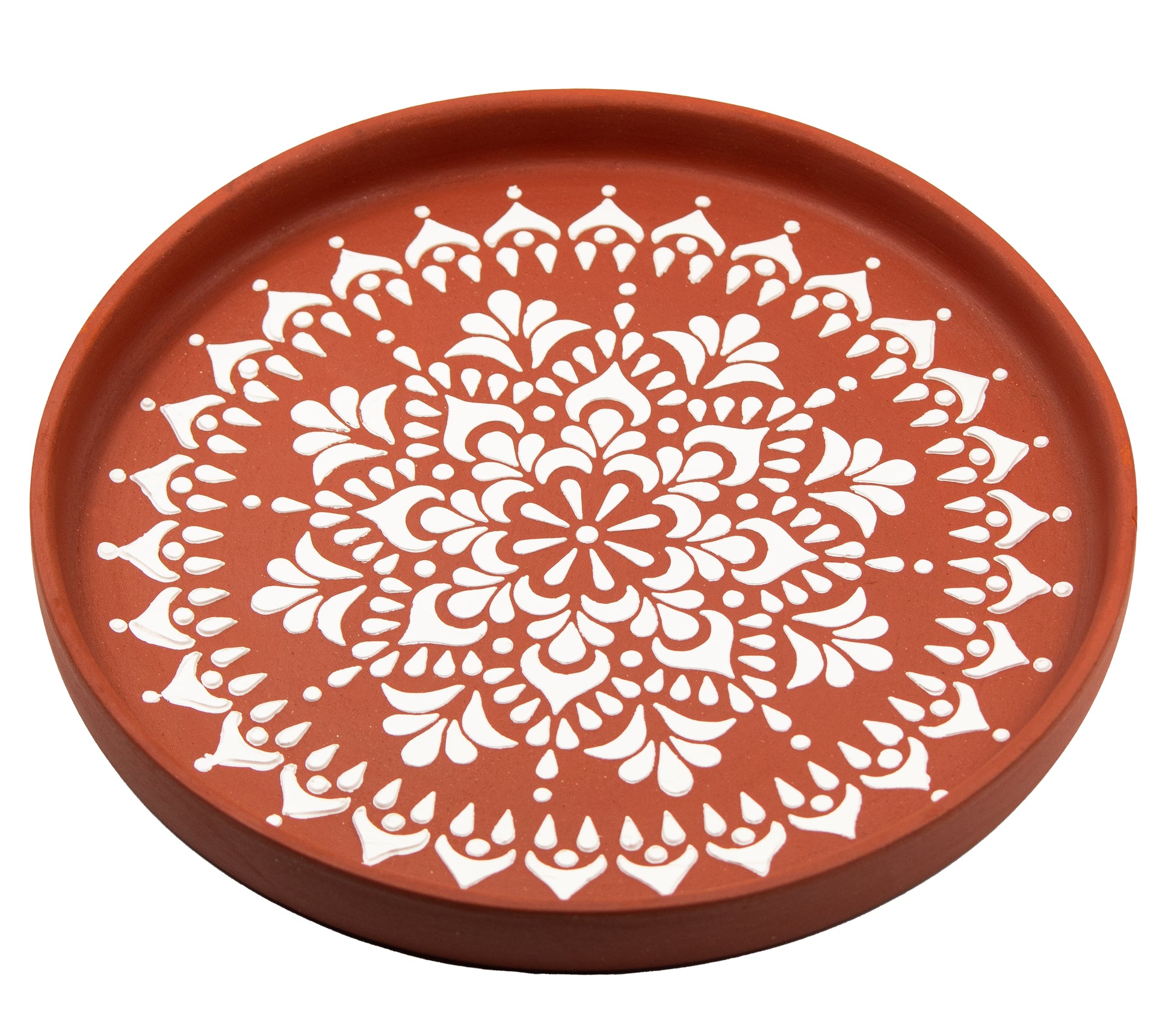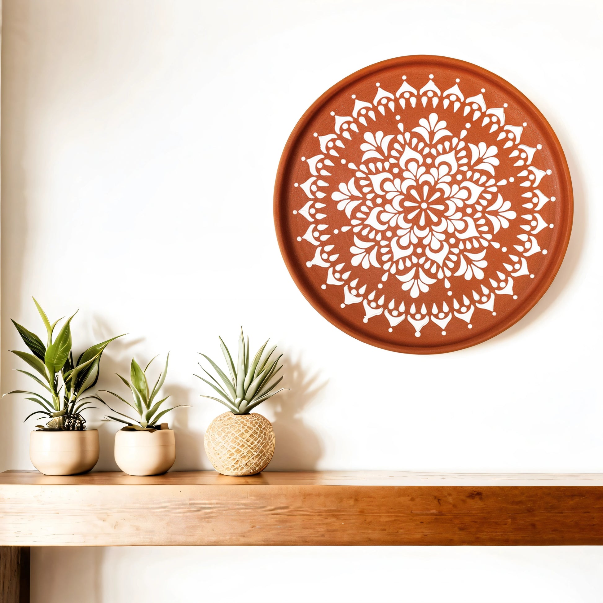 Handcrafted Terracotta Floral Mandala Wall Plate (12 Inches)